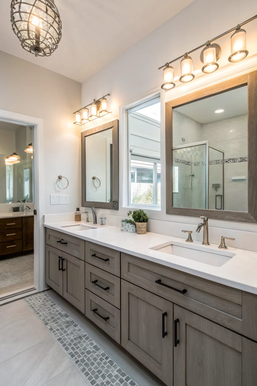 Introduce a double washbasin to impart a dash of luxury and utility, ideally suited for shared bathrooms. I’m captivated by the way this arrangement cultivates streamlined morning habits while supplying generous storage solutions.