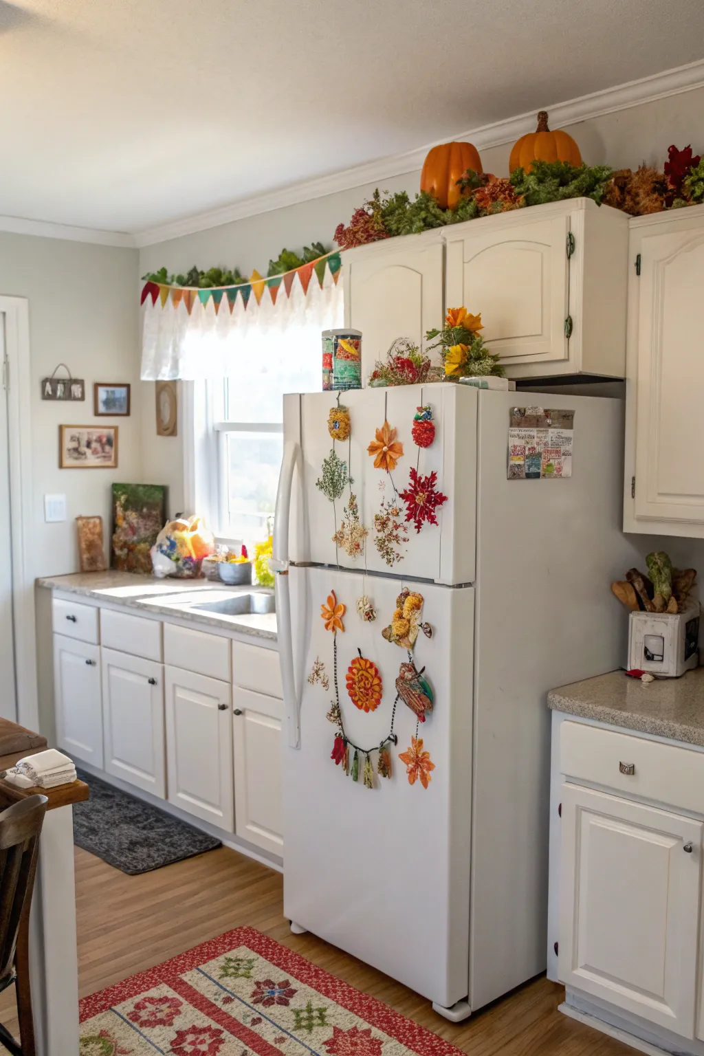 - Counterfeit Pumpkin and Leaf Festoon: Upgrade your fall stylistic layout with a dynamic pumpkin and leaf festoon to light up your kitchen space.