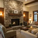 - Stone Fireplace Shelf: Improve your lounge’s charm with a countryside stone shelf, great for decor.