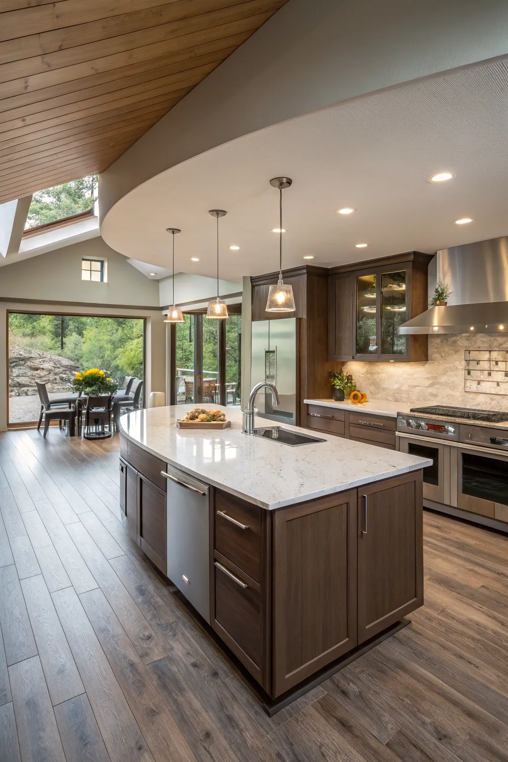 Incorporate multi-layered surfaces onto your island for versatility. I cherish the manner in which this attribute permits distinct zones, impeccable for cooking, dining, and operating.