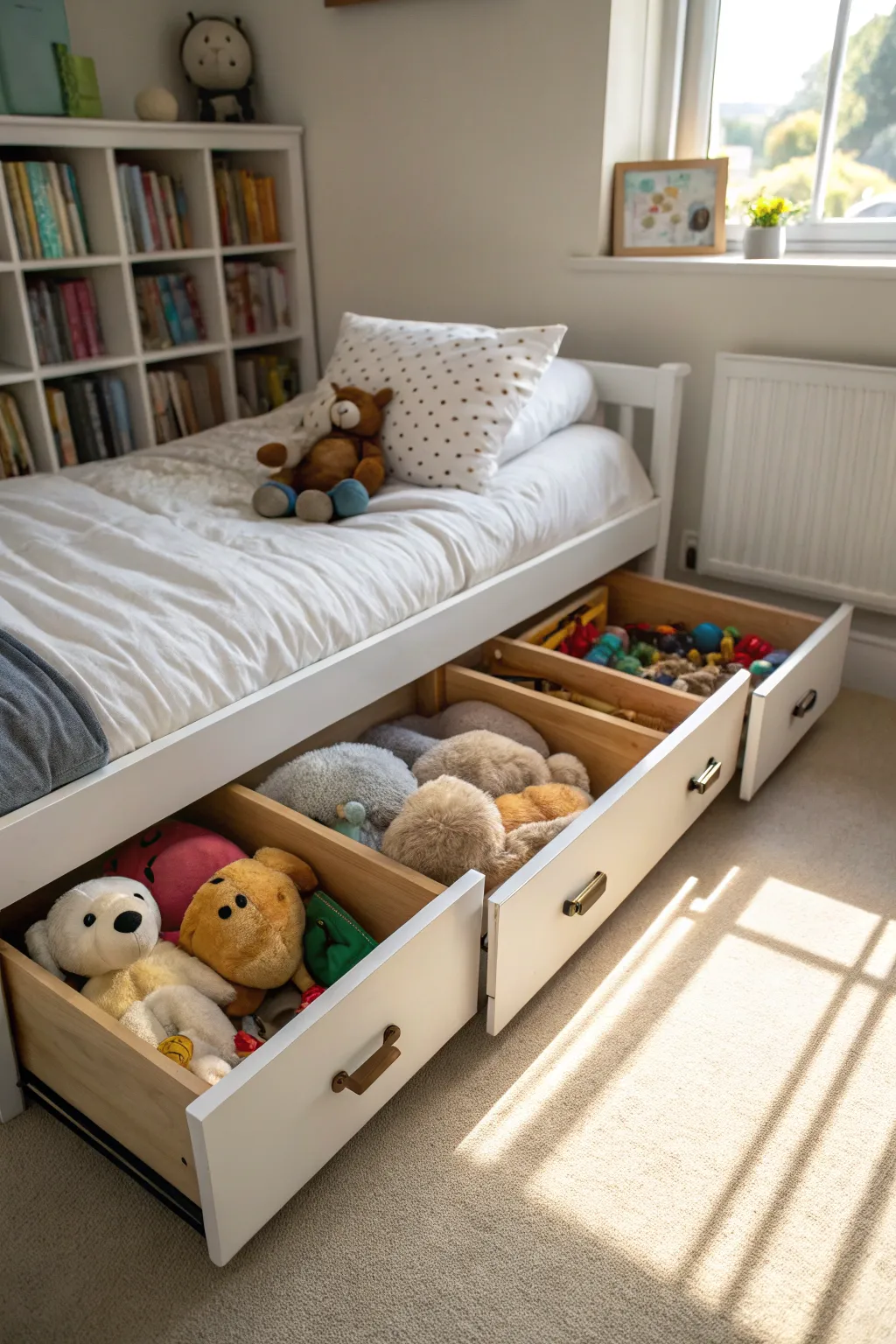 - Under-Bed Storage Drawers: Keep stuffed animals organized with these drawers, maximizing hidden space.