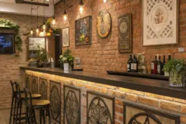 - Modern Hanging Lights: Illuminate your bar area with sleek hanging lights, creating a cozy and welcoming atmosphere.