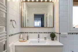 Classic wainscoting is a perennial favorite that brings a dash of sophistication to any bathroom. I’ve often employed it to adorn the lower section of walls, crafting an elegant framework for the entire room.