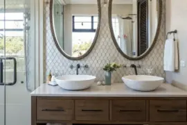 - Aged Vanity Mirrors: Complement patterns via fashionable pieces giving timeless feeling.