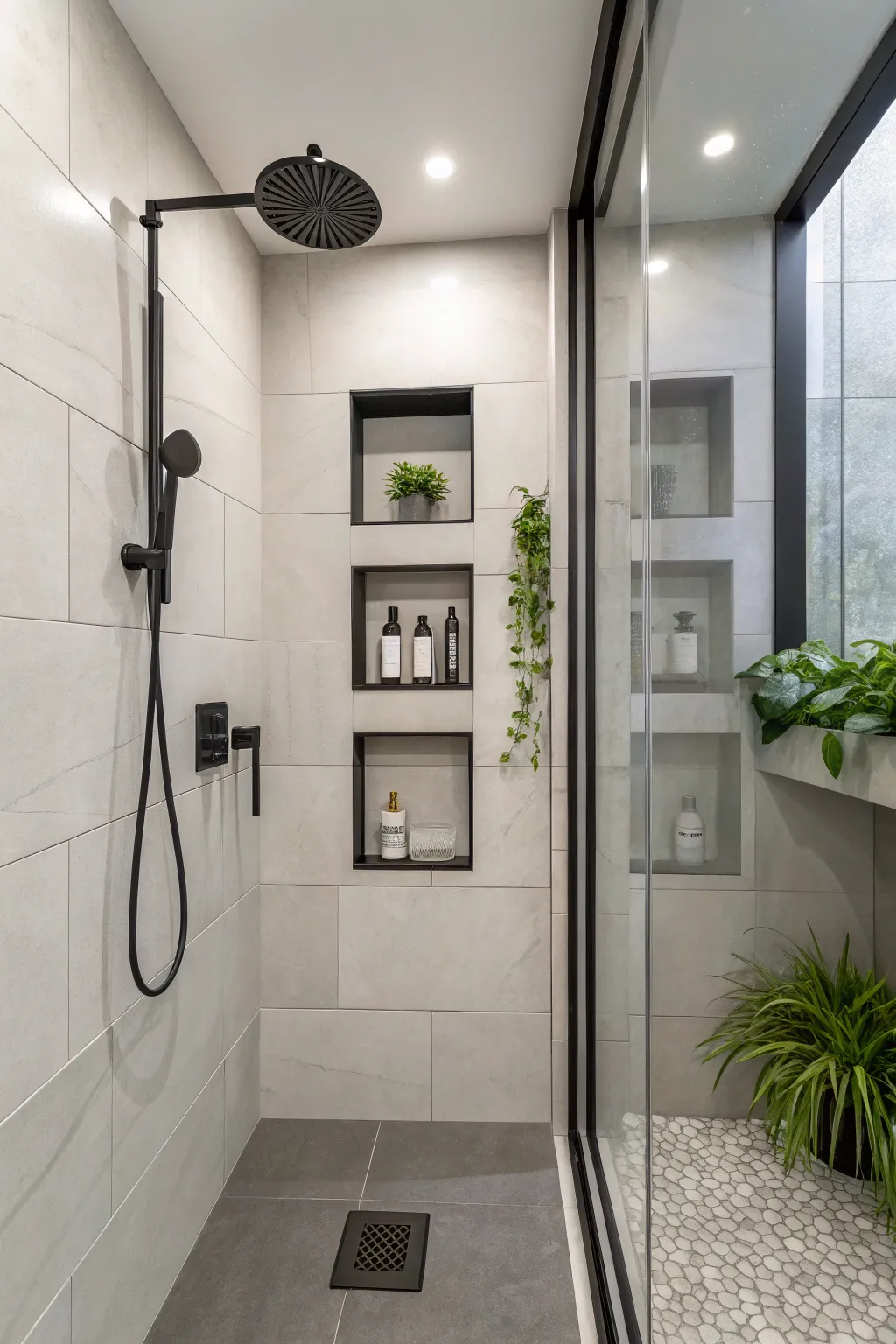 Incorporating concealed storage keeps your shower uncluttered and sleek. I frequently conceal niches behind doors or within walls for a clean, functional space.