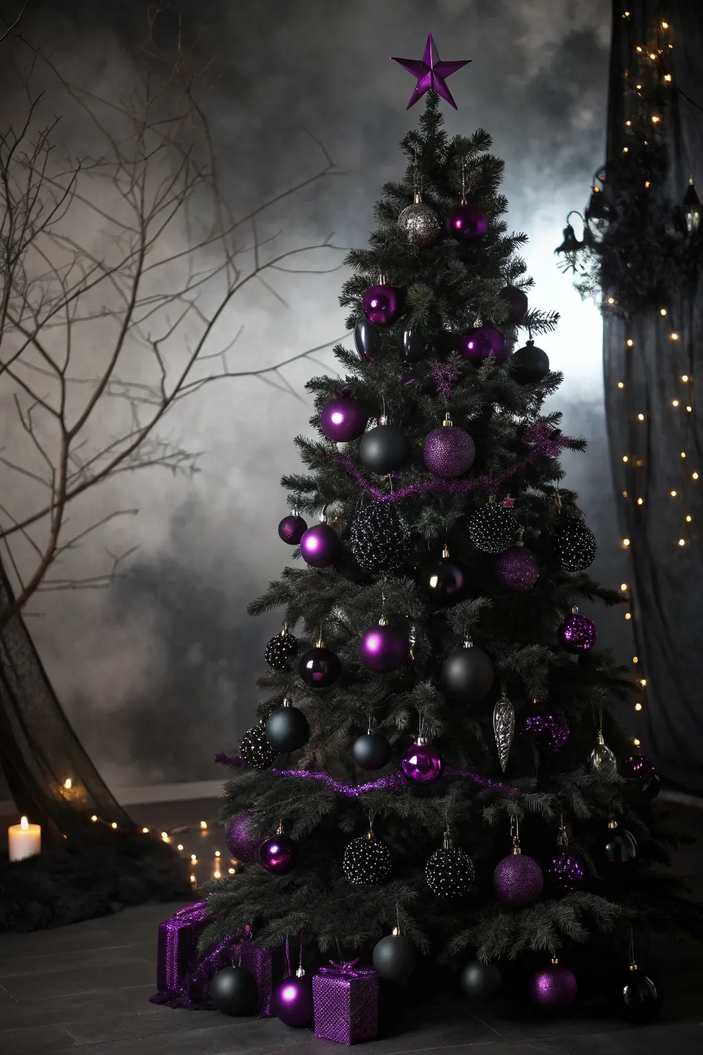 - Ebony and Violet Holiday Ornaments: Elevate your tree with ebony and violet ornaments for a mysterious and enchanting aesthetic.