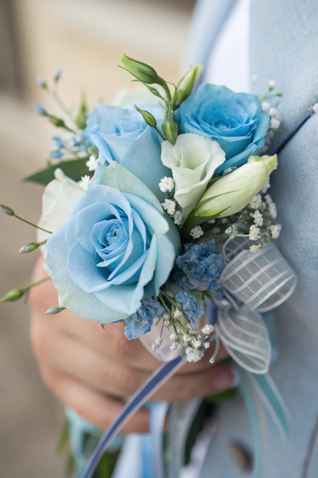 Pale blue roses are a classic pick that gives off class and sophistication. I often use them to go with traditional white and green setups for a timeless look. They are unforgettable!