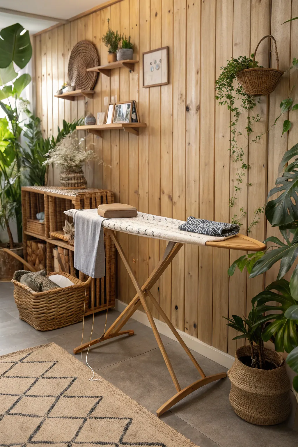 For a touch of nature, think about a timber ironing station that complements your decor. It’s a beautiful method for incorporating sustainable materials into your home.