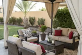 Incorporate eclectic accents like candle lanterns and woven baskets to enrich your space. Over the years, I’ve gathered a variety of pieces that inject personality into my patio.