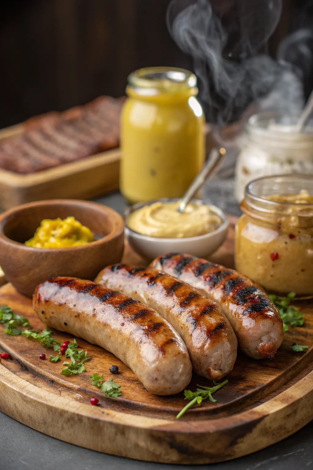 Grilled sausages are a simple and economical BBQ favorite. For added flavor without added cost, serve them with a variety of mustards and relishes.