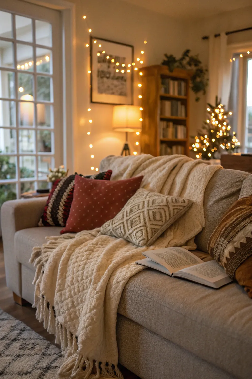Enhance a basic couch with a variety of toss cushions and soft warm covers to add texture and coziness. In my designs, these accents often bring a sense of comfort and individual style.