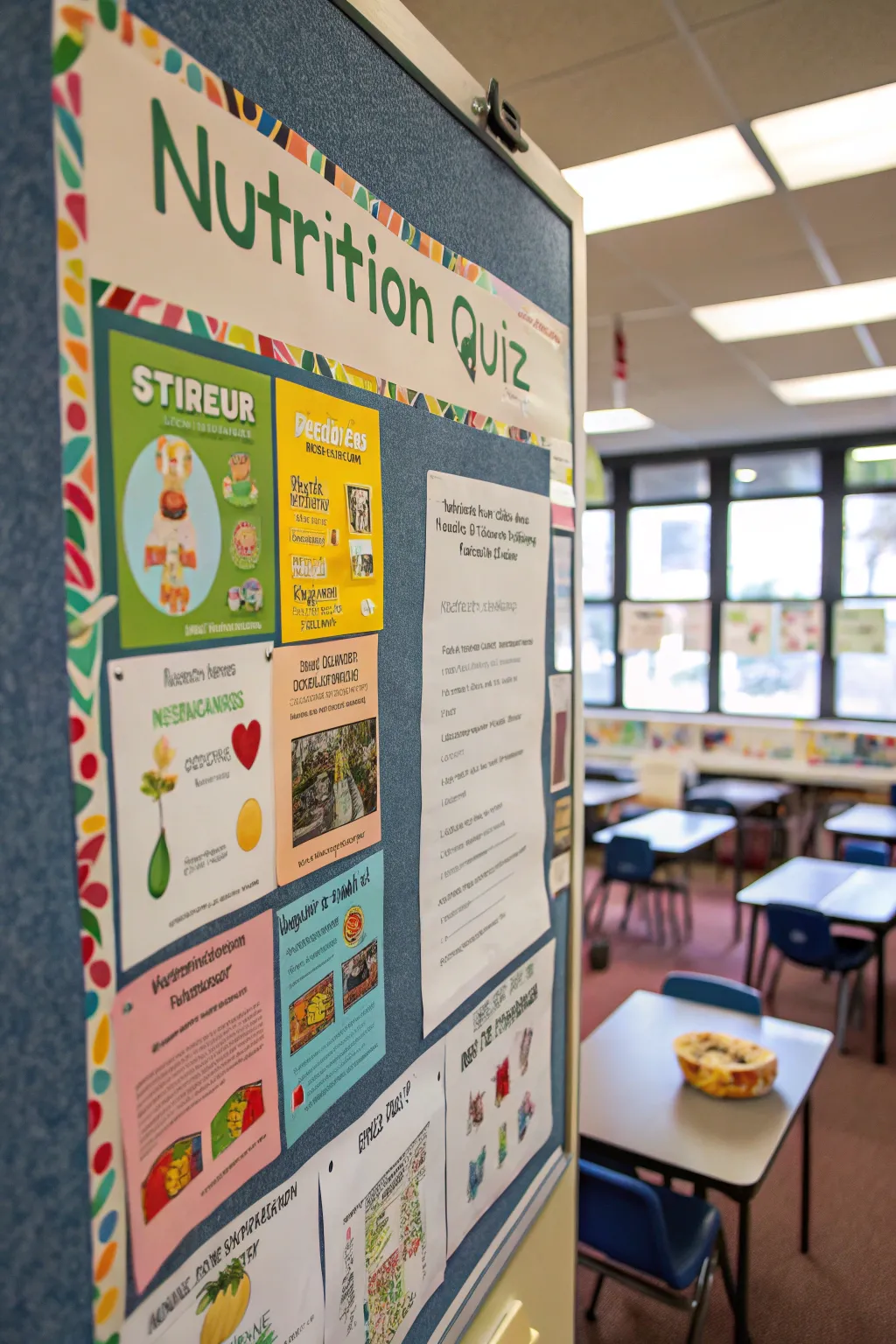 Encourage healthy eating habits with a board displaying vibrant images of fruits and vegetables. Share interesting tidbits and helpful tips about nutrition, motivating students to make better food choices.