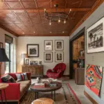 A chandelier crafted from natural materials such as antlers or wrought iron introduces countryside charm. It’s an unexpected detail that can become a conversation starter.