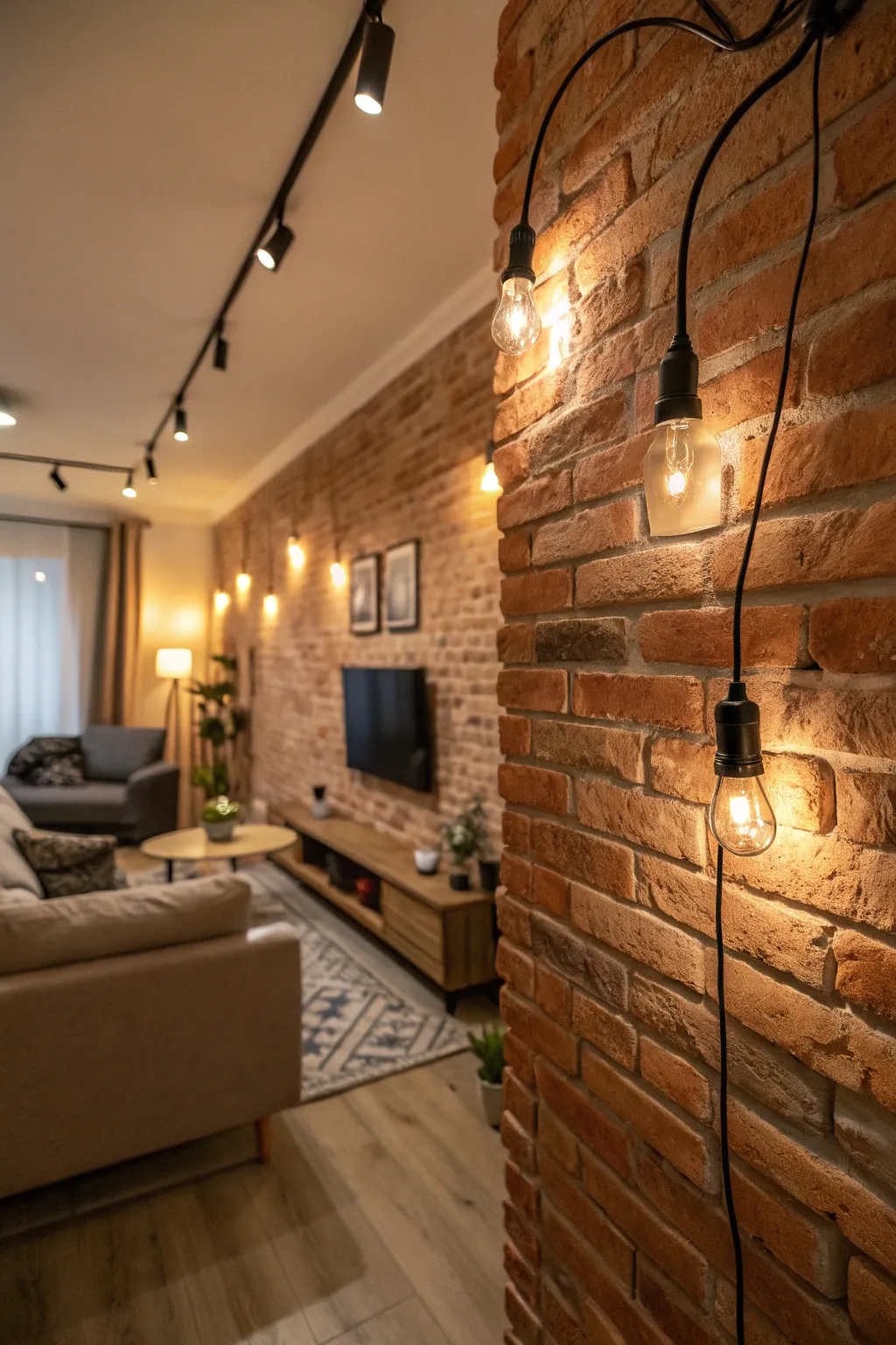 - Versatile Fairy Lights: Conjure a warm and inviting setting by spotlighting brick walls through adaptable fairy lights, enhancing their textural richness.