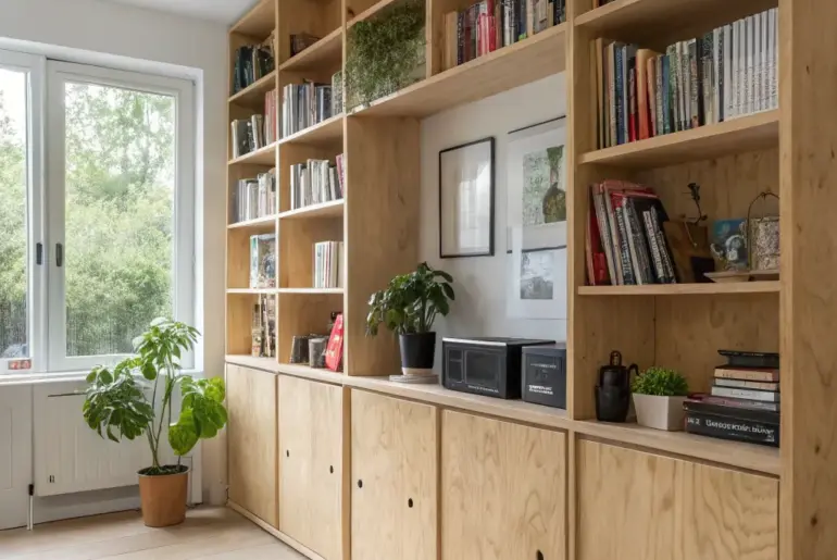 Plywood is now a popular choice in interior design, striking a balance between cost-effectiveness and visual charm. Let’s explore inventive methods to integrate this adaptable material into your home’s aesthetic. Refined Home Office A surface board desk and shelving unite style and utility in a home office. Revamp your home office with a simple plywood desk and shelving setup. I find it wonderfully effective at creating a tidy, productive workspace. Possibly helpful picks: Surface Board…