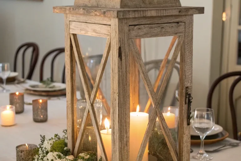 Farmhouse lanterns are a delightful way to introduce rustic charm into any home. Whether positioned inside or outside, they cast a cozy radiance and bring a stylish element capable of transforming any setting. Lanterns with Tinted Candles Colored candles inject a burst of color within lanterns. Exchange plain white candles for colored ones inside your lanterns to coordinate with your quarter’s color scheme. You might like: Assortment of Tinted Pillar Candles: Brighten your lantern presentations…