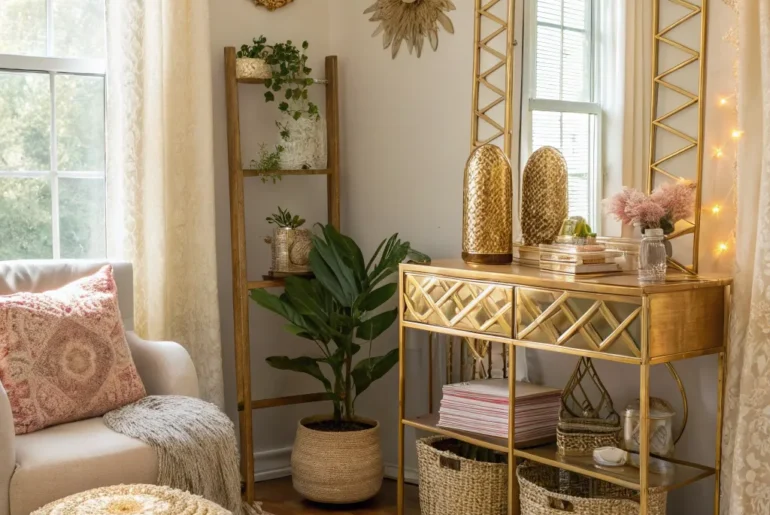 Hello there, fellow decorating aficionados! If you’re aiming to infuse your living space with a sprinkle of enchantment, blending boho vibes with a hint of glamour, you’ve landed in the perfect spot. Cushioned Seats A cushioned ottoman functions as a stylish and functional focal point. Opt for a cushioned ottoman to append elegance and functionality. I’m keen on deploying them as both seating accommodations and an eye catching design component. Possibly handy products: Circular Cushioned…