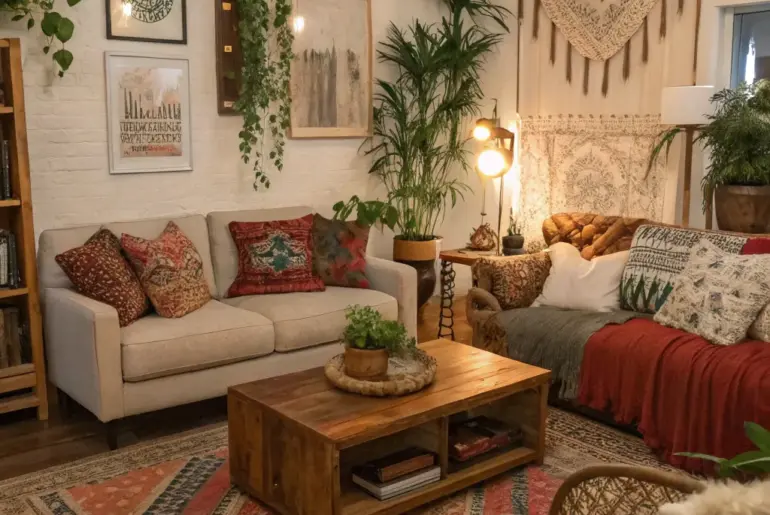 Bohemian style, celebrated for its relaxed vibe and diverse charm, is ideal for individuals who cherish injecting their living spaces with character and comfort. Let’s discover some stylish boho decorating concepts to turn your place into an inviting, creative retreat. Display Unique Handcrafted Decorations A display of unique handcrafted decorations in a boho setting. Bring in character with unique handcrafted decorations. I’m fond of displaying handcrafted pottery and artisanal vases, each telling its own story…