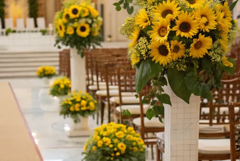 There’s a certain irresistible charm about a wedding decorated with sunflowers. These radiant and cheerful blossoms bring a sense of warmth and happiness to any festivity, making them an ideal selection for your special celebration. Table Runners with Sunflowers A beautifully set table with runners adorned with sunflowers. Infuse elegance into your reception with sunflower table runners. Merge them with understated linens for a beautiful spread that enhances your dining occasion. These products might be…