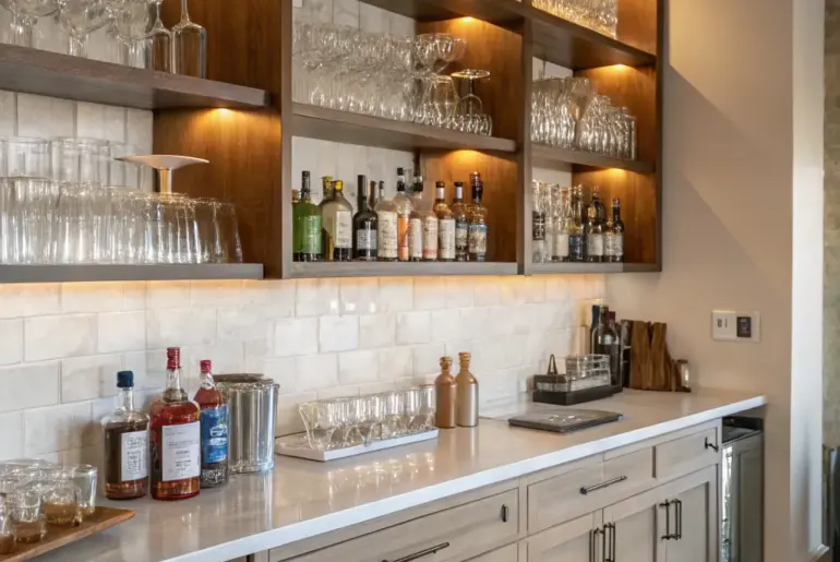 Longing for a chic and practical bar area right in your own home? Mirrored shelving not only brings a touch of sophistication but also maximizes your storage options, making it an ideal addition to any living space. Art Deco Inspiration Art Deco inspiration brings timeless elegance to your bar. Draw inspiration from Art Deco with geometric mirror designs and streamlined racks. This glamorous style is a personal favorite because of its timeless charm and elegance.…