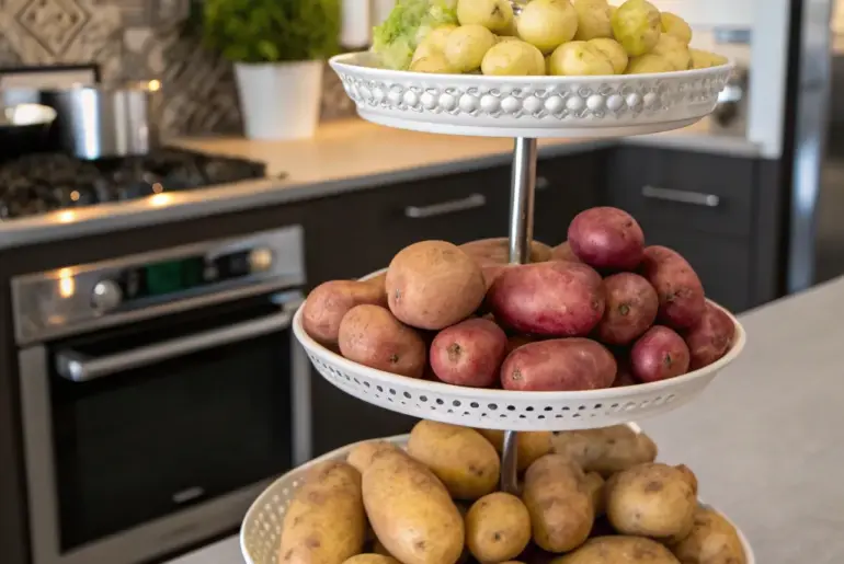 Potatoes are essential in many homes, but who says they can’t be presented beautifully? Let’s transform your potato storage into an elegant feature with these charming concepts. Themed Displays A festive potato display for the holidays. Produce a holiday-themed display with your potatoes. This is a fun way to bring festive spirit into your kitchen. Check these products out: Festive Enamel Serving Bowl: Display your holiday potatoes stylishly with this elegant, festive-themed enamel serving bowl.…