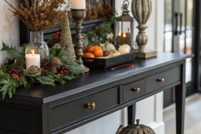 A dark entry table has the power to completely transform a space into a sophisticated retreat. Let’s explore some imaginative styling concepts that will make your console table the most admired feature in your home. Symmetry Achievement Balanced arrangements bring balance and harmony. Arrange balanced layouts for a structured feel. This method frequently brings a sense of serenity and organization. May just do the trick: Selection of Ornate Desk Lamps: Refine elegance with corresponding desk…