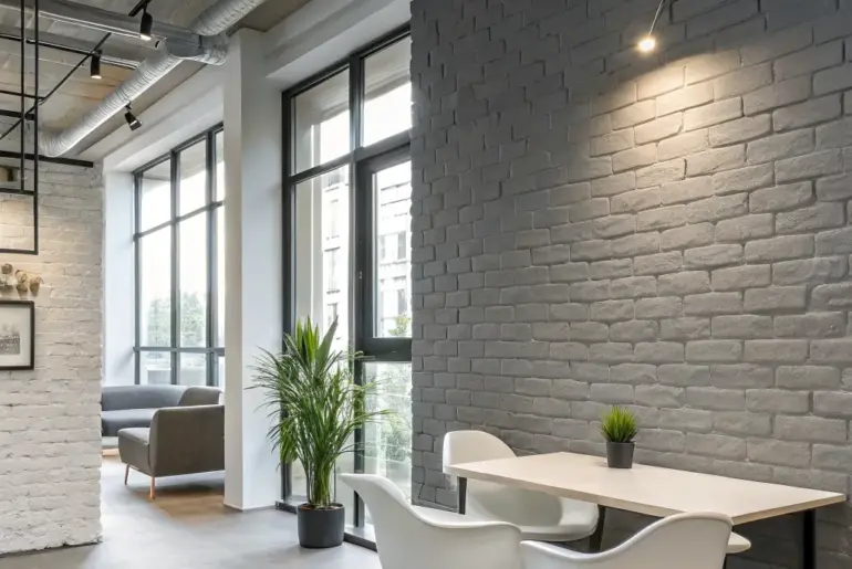 Giving interior brick walls a fresh coat can completely revamp your space and inject a new sense of style into your home. Whether you’re drawn to a warm, rustic feel or a polished, contemporary design, there’s an idea here to spark your next creative endeavor. Industrial with Raw Gray An urban loft showcasing industrial charm with its gray-washed brick wall. For an industrial feel, keep the brick raw and add a thin layer of gray…