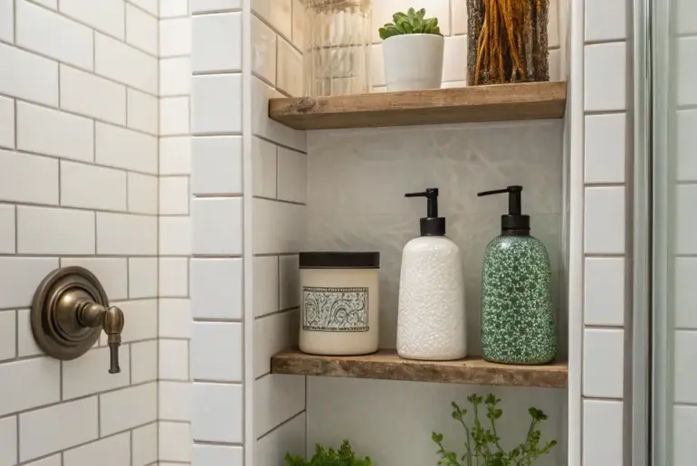 The shower niche is a small area that delivers a lot of functionality and a dash of design in any bathroom. Let’s take a look at creative ways to turn your shower niche into a striking design feature. Shiny Details A luxurious niche enhanced with copper accents. Adding shiny details inside the niche can enhance its overall aesthetic. I’ve used copper trims to beautifully highlight niches, giving a luxurious accent. Products that could assist: Copper…