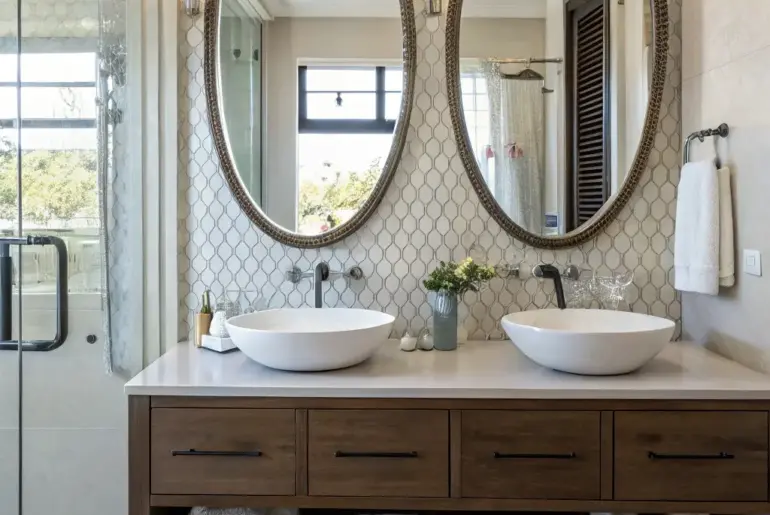 Turning your bathroom into a haven of tranquility with a double vanity can truly transform the space. Let’s dive into some inspiring concepts for your upcoming bathroom transformation. Incorporate Stunning Floor and Wall Treatments Textured walls and patterned floor coverings introduce visual intrigue. Patterned tiling on the floor or walls can profoundly transform the space. Personally, I find joy in using textured splashbacks to add dimension and allure. Useful items to consider: Decorated Ceramic Floor…