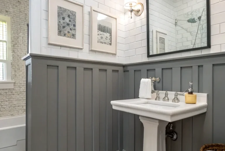 If you’re looking to give your bathroom a delightful makeover, introducing wainscoting could be the perfect solution. These tasteful wall enhancements not only provide visual appeal but also amplify the atmosphere of your personal space. Sleek and Shiny Glass aspects and white paneling create a sleek, modern bathroom. Match glass aspects using white paneling for a sleek impression. This blend brightens the space and adds sophistication. Products that could assist: Glass Bathroom Racks: Enhance storage…