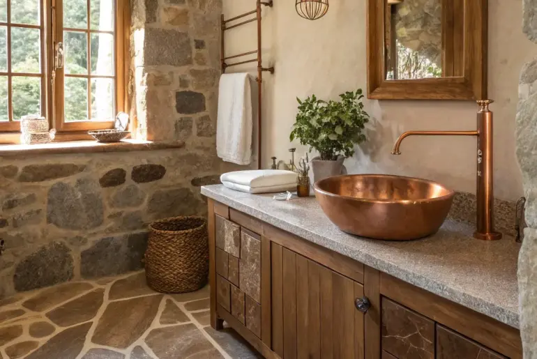 Nothing quite matches the cozy, welcoming radiance of copper in turning a bathroom into a countryside sanctuary. With the following concepts, you’re able to design a space that exudes both lavishness and an earthy feel, abundant with organic textures and hues. Standalone Metallic Tub Express yourself boldly with a striking metallic tub. A standalone metallic bathtub becomes the definitive core attraction, merging grandeur with countryside appeal. I’m captivated by how these tubs can give any…