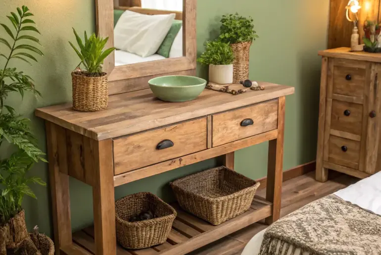 You can fashion a tranquil and practical area in your bedroom simply by introducing a vanity. Let’s uncover some imaginative methods to incorporate a vanity into your personal retreat. Adaptable Layout An adaptable vanity that adjusts to your requirements. An adaptable vanity can function as a desk or workspace, enhancing its usefulness. In my layouts, I frequently incorporate this concept for individuals who require versatility in their space. A few relevant products: Dual-Purpose Dressing Table…
