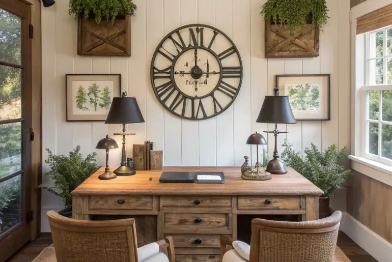 Turning your office into a peaceful, countryside-inspired retreat can make it a more pleasant and effective space. Let’s discover how to infuse that comfortable, welcoming vibe right into your work area. Bold Lighting A bold chandelier adds drama and elegance to your rustic farmhouse office. Go with bold lighting like a striking chandelier to draw the eye upward. This creates a sense of drama and refinement in the area. Consider these options: Farmhouse Chandelier: Elevate…
