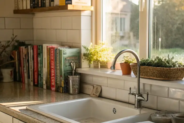 Have you ever paused and considered the potential of that empty space over your kitchen sink? Let’s explore some imaginative ideas to transform this often-neglected area into a focal point of charm and utility. Incorporate Artistic Pieces or Inscriptions Artistic pieces personalize and enrich the cooking space’s ambiance. Introducing artistic pieces or uplifting inscriptions can customize the space over your sink. I appreciate how a simple framed image can add charm and distinctiveness. Might be…