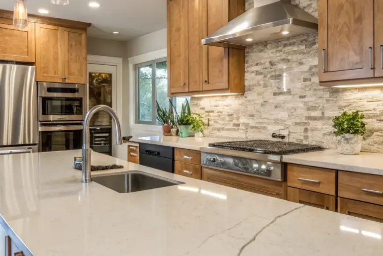 Quartz worktops have risen to prominence in contemporary kitchen aesthetics, harmonizing charm with utility. Come with me as we uncover inspiring concepts to metamorphose your cooking area into a quartz-enhanced showplace. Seamless Backsplash Unification Seamless unification of quartz worktops and backsplash. Utilize the same quartz for worktops and backsplash for a unified, seamless appearance. This continuity is a strategy I employ to create an impression of greater space and coherence. Products that could assist: Quartz…