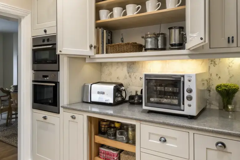 In today’s kitchens, keeping things tidy is super important for both how well it works and how good it looks. That’s where storing appliances in cabinets comes in handy. It’s a great way to keep your kitchen tools neatly tucked away but still easy to get to when you need them. Pull-Out Shelving Pull-out shelving makes it easy to reach kitchen tools, improving both how well it works and how organized it is. With pull-out…