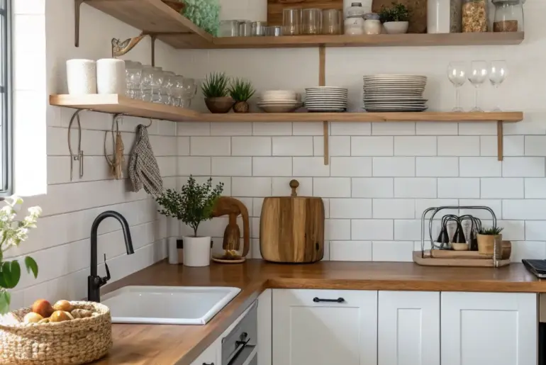 Designing a welcoming farmhouse kitchen is about pairing homespun allure with understated sophistication. Let’s uncover some charming ideas to infuse that cozy farmhouse ambiance into your kitchen countertops. Stacked Textures for Depth Stacked textures adding depth to a farmhouse kitchen décor. Stacking different textures like wood and rock can add depth. I love the contrast of a rough-cut beam with a smooth countertop. Check if these fit your needs: Weathered Wood Kitchen Counter Seat: Add…