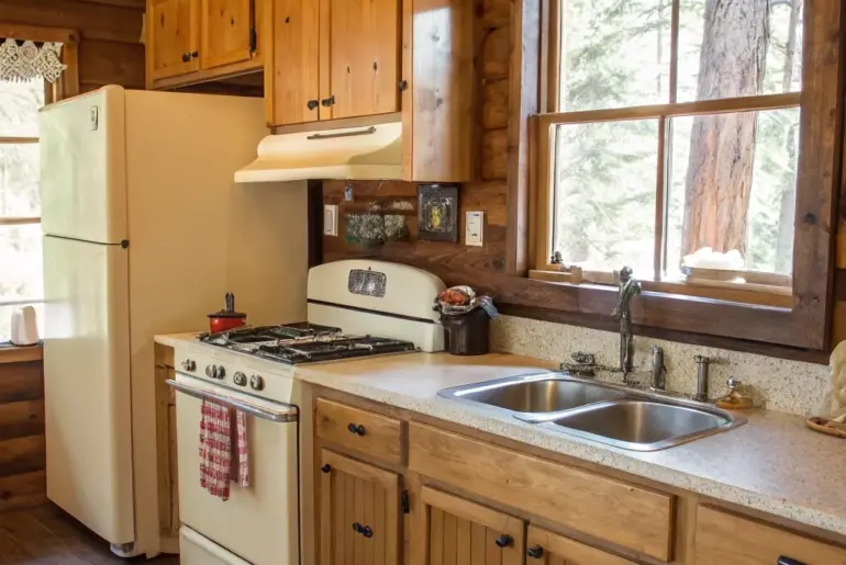 Designing a log cabin kitchen is all about celebrating the natural world’s cozy appeal. Let me present some of my top ideas that pair country charm with today’s conveniences. Add Rocky Details A country kitchen with a stone backsplash, which complements the wooden features flawlessly. Integrating stone features into your kitchen, perhaps for a backsplash or the central island, brings in a sturdy yet classy vibe. It coordinates beautifully alongside wood, creating genuine harmony. Maybe…