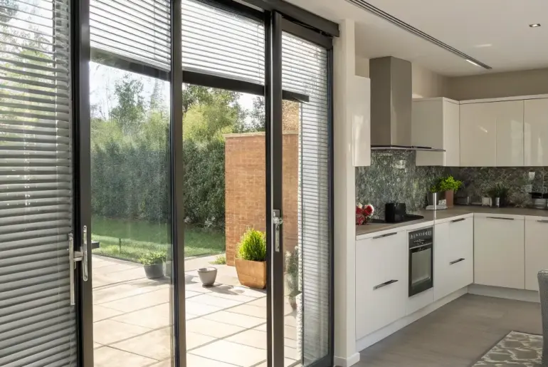 Bifold doors present a wonderful opportunity to introduce more light and space into your kitchen, forging a fluid connection between your living area and the outdoors. Whether you envision a contemporary, open-concept space or a comfortable corner with a view of your garden, there’s a bifold door concept ready to revolutionize your home. Select a Vibrant Color Frame Boldly colored frames make a striking statement in your kitchen. Make a statement with boldly colored frames…