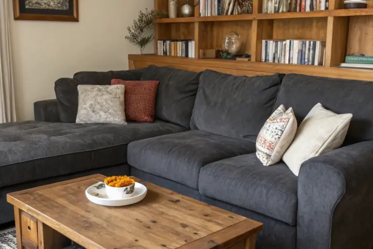 If you desire to inject an element of elegance into your home, a charcoal-toned sectional is an ideal option. Let’s uncover several inventive concepts to transform your living area into a stylish yet welcoming retreat. Mix Modern and Vintage Mixing styles adds character and tells a story. Blend modern and vintage components around your sectional for an eclectic aesthetic. This blend contributes character and narrates a story through your decor selections. Try these: Retro style…
