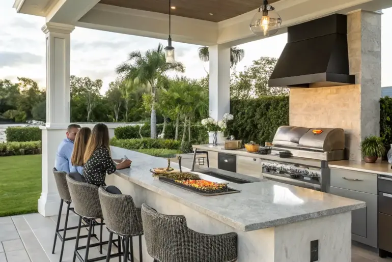 Do you envision an outdoor kitchen where you can savor delightful drinks and barbecue to your heart’s content? Allow us to explore some amazing concepts for designing an outdoor kitchen complete with bar seating, ideally suited for hosting gatherings. Rounded Counter Island A modern outdoor kitchen bar with a distinctive curved island. A rounded counter island can deliver a distinctive, enticing seating arrangement. From my perspective, it fosters conversation and makes the area feel more…