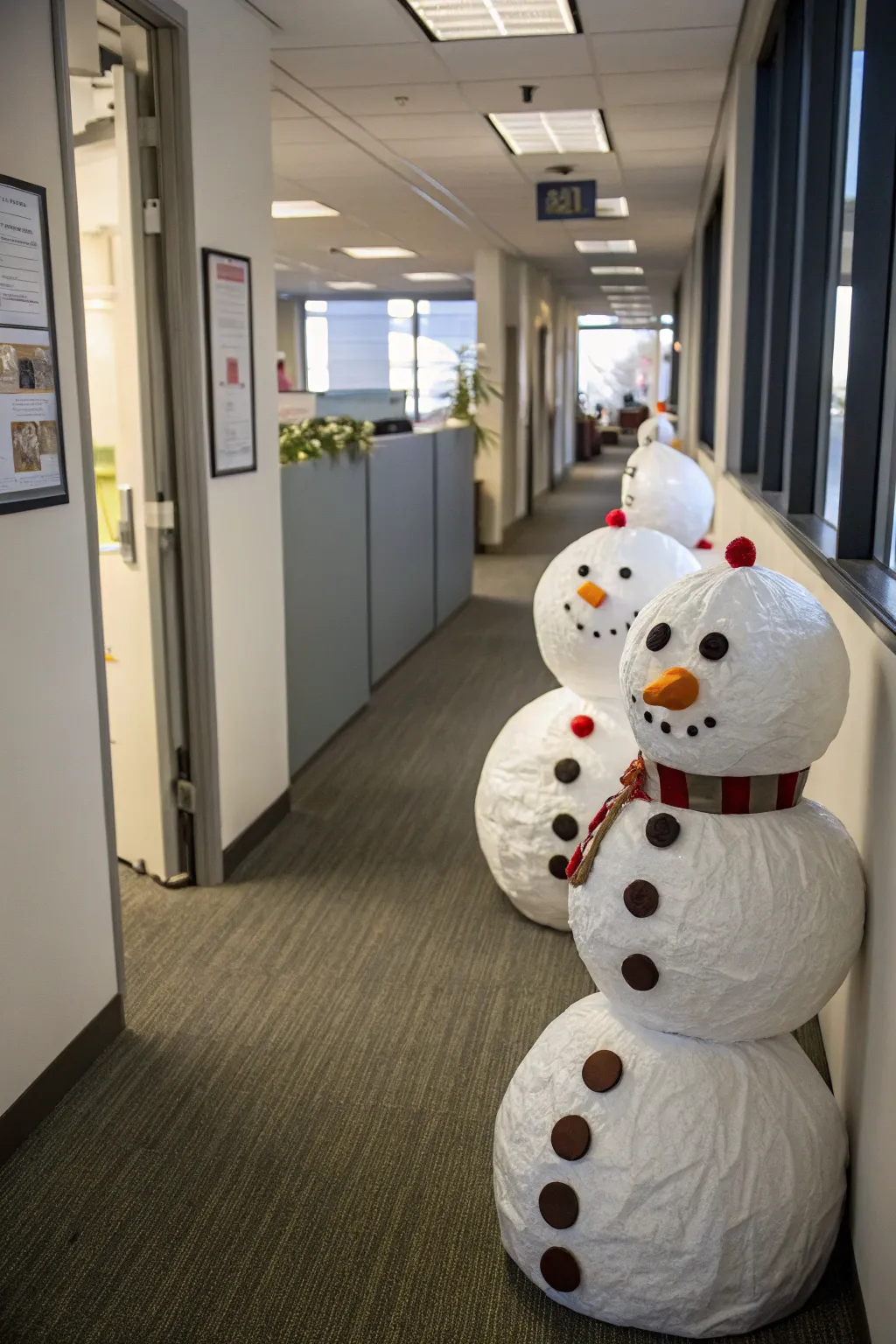 Morph each office accessway into a festive work of art with rings and festoons. I once triumphed in a challenge with an accessway fashioned as a massive present, replete with a ribbon.