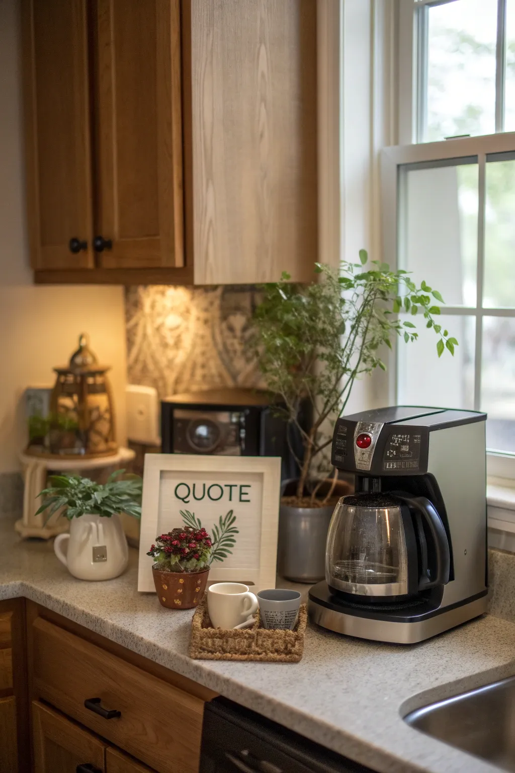 Infuse your hub with character using letterings, flora, and ornate canisters to personalize it. This addition not only refines the aesthetic but also establishes a cozy and hospitable ambiance.