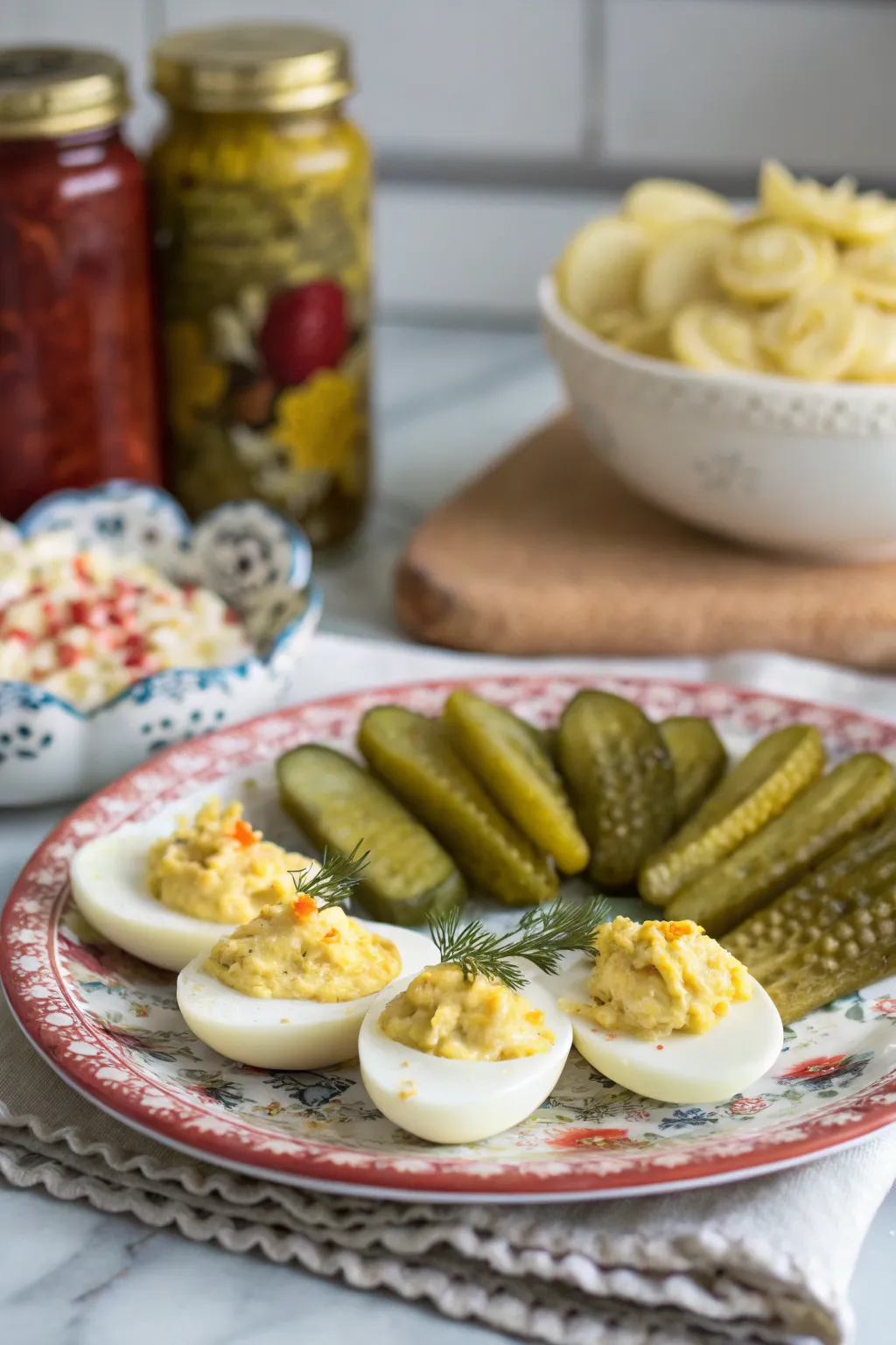 • Stuffed Egg Platter: Display your stuffed eggs in style using a classic platter to enhance your vintage-themed dish.