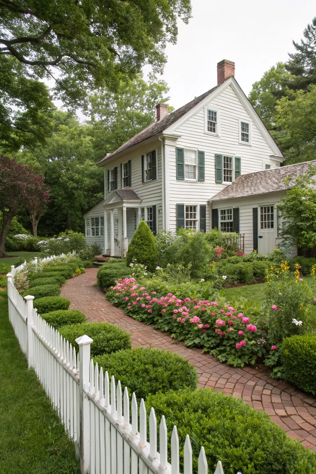 - Ornamental Garden Boundary Barrier: Enhance your garden edges with stylish fencing that complements your home’s classic colonial design.
