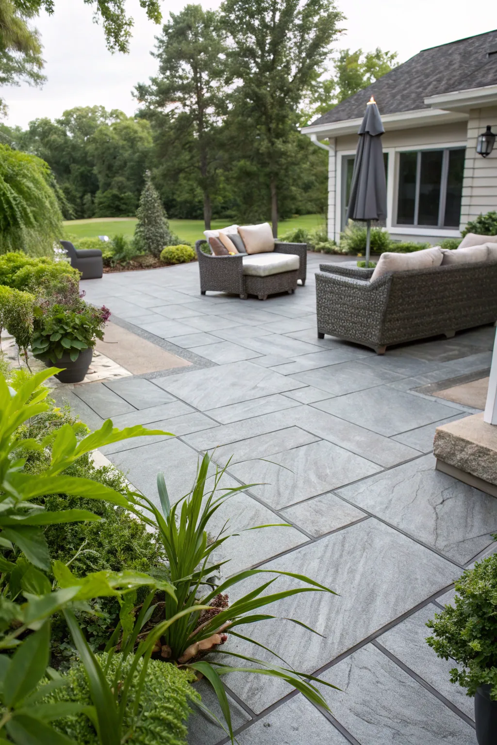 Incorporate contrasting boundaries to frame your patterned concrete projects elegantly. Boundaries append definition and have assisted me in fashioning a polished appearance that unifies my garden blueprint.