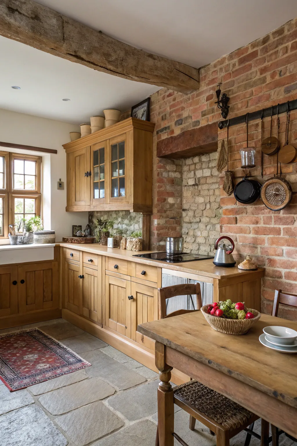 Incorporate elements crafted from natural wood, such as exposed rafters or a quaint dining table, to ground your kitchen with rustic appeal. Personally, I’m captivated by how repurposed wood infuses a sense of history and comfort.