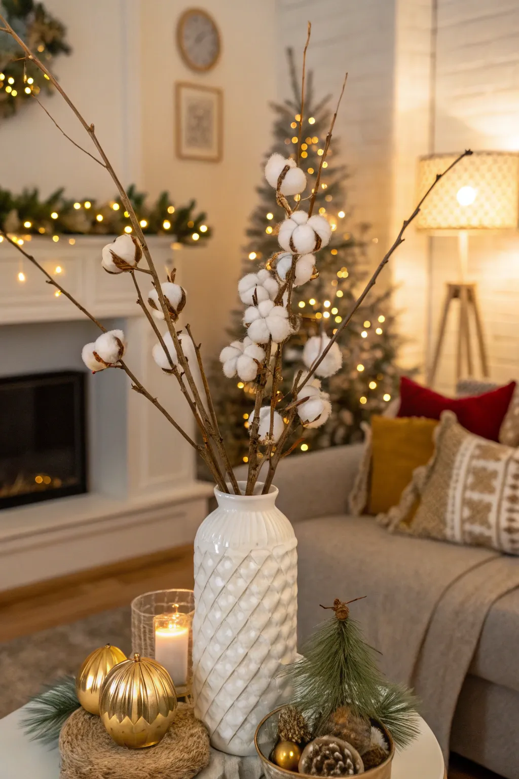 - Simulated Cotton Sprigs: Opt for authentic simulated cotton stems to maintain an enduring, charming decor.