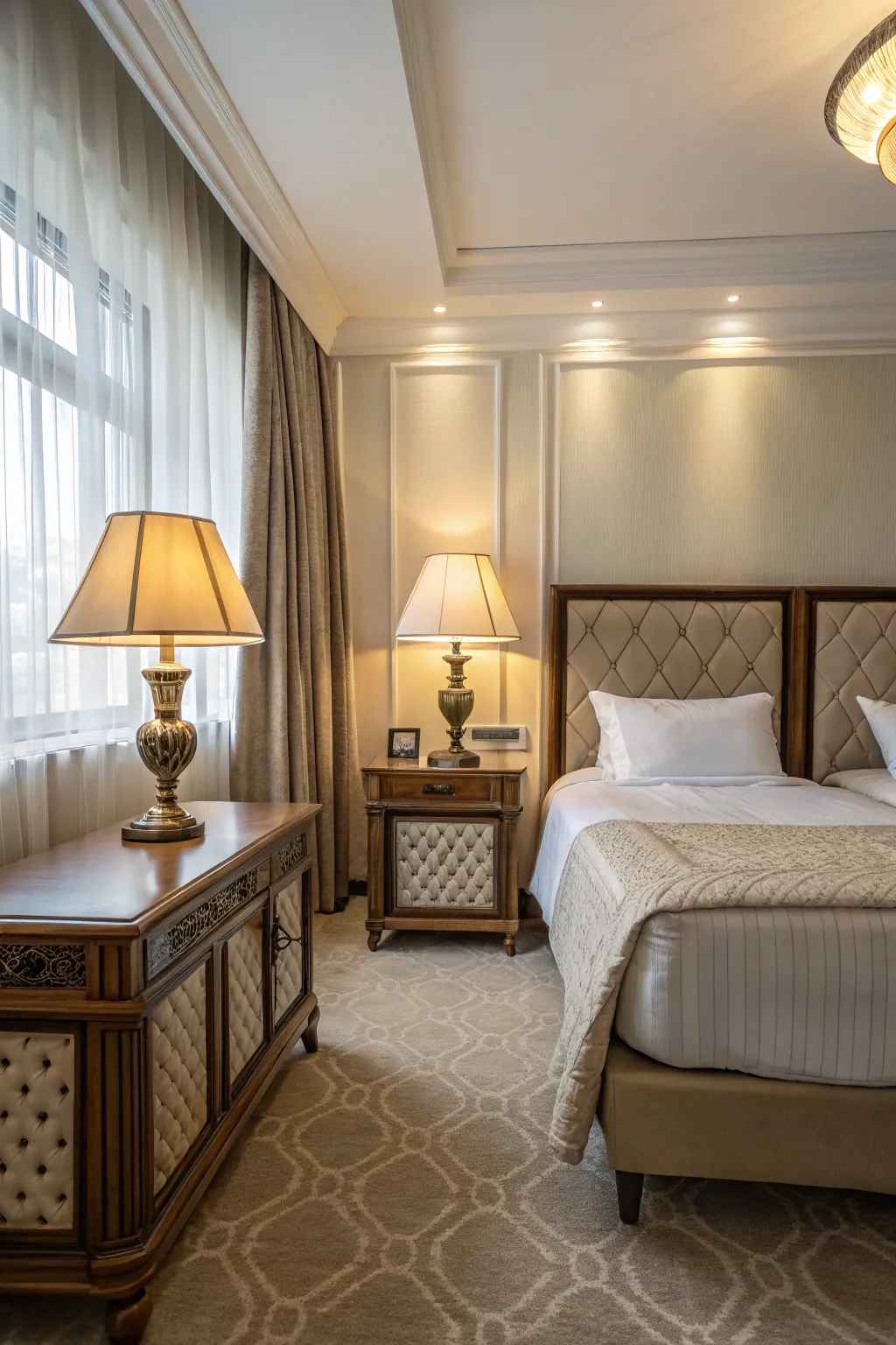 - Luxury tufted headboard: Elevate your area with a luxurious tufted headboard to complement your symmetrical design.