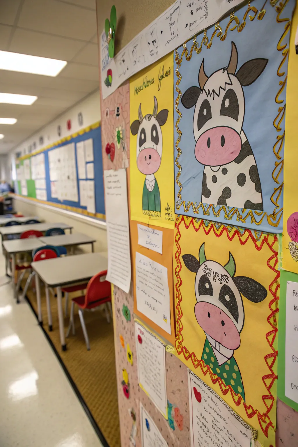 Imagine featuring cows in delightful scenes along the hallway, each highlighting different aspects of classroom progress. It’s a captivating way to display student achievements.